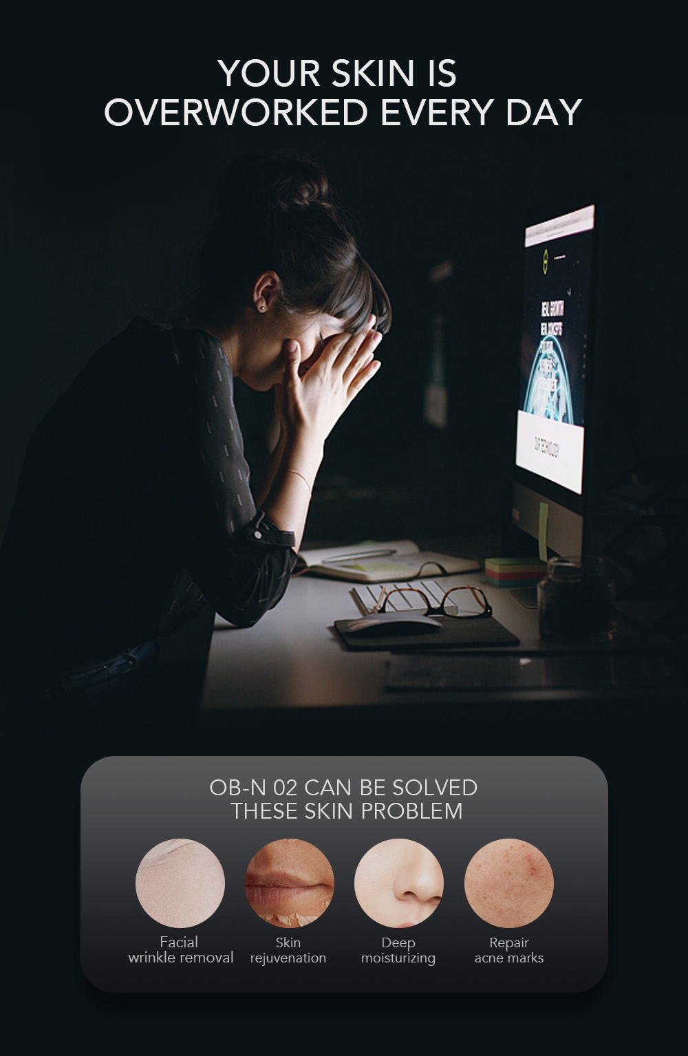 OB-N 02 sử dụng kỹ thuật Điện di và Điện thẩm thấu, không cần bất kỳ dụng cụ tiêm nào, dễ dàng mở kênh nước (AQP), vận chuyển dưỡng chất cần thiết cho da, từ đó điều trị mọi vấn đề về da