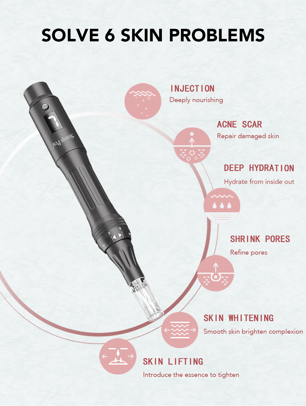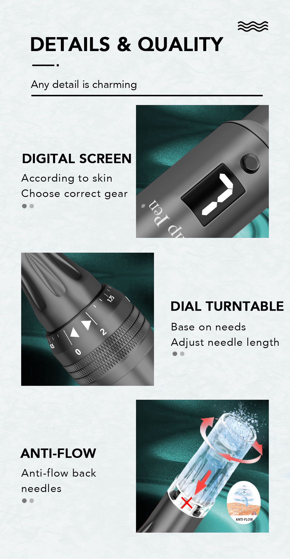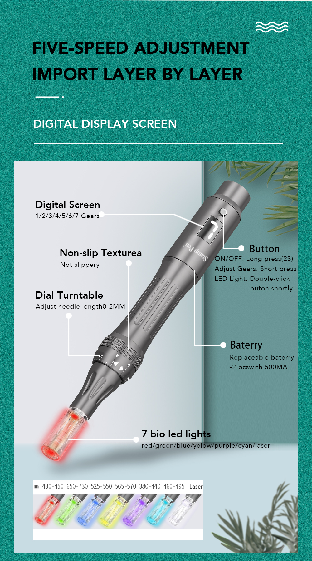 Bút Dao Led Microneedling Được Nạp Điện Chống Trào Ngược Với 2 Pin LCD Tùy Chỉnh